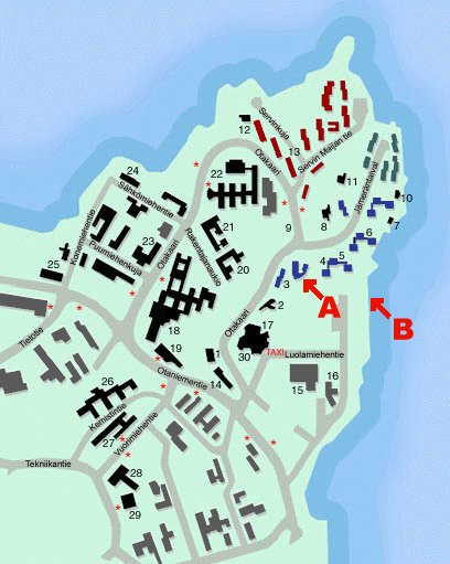 A = Kammio, B = veneranta